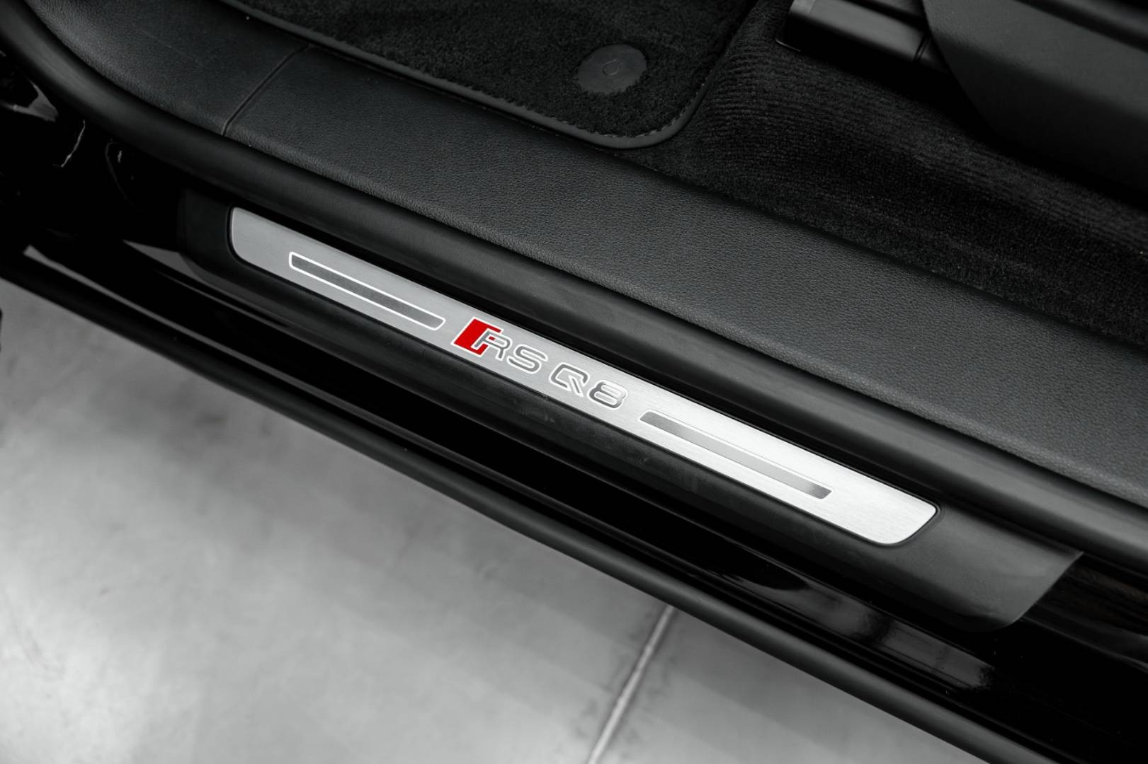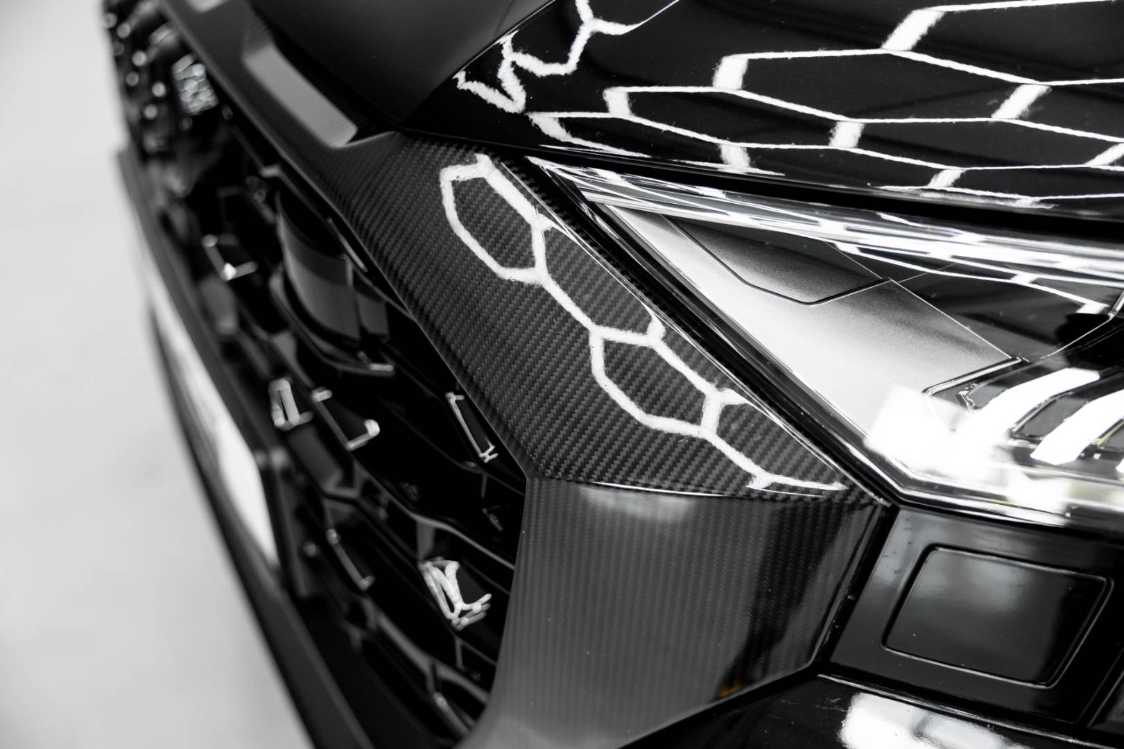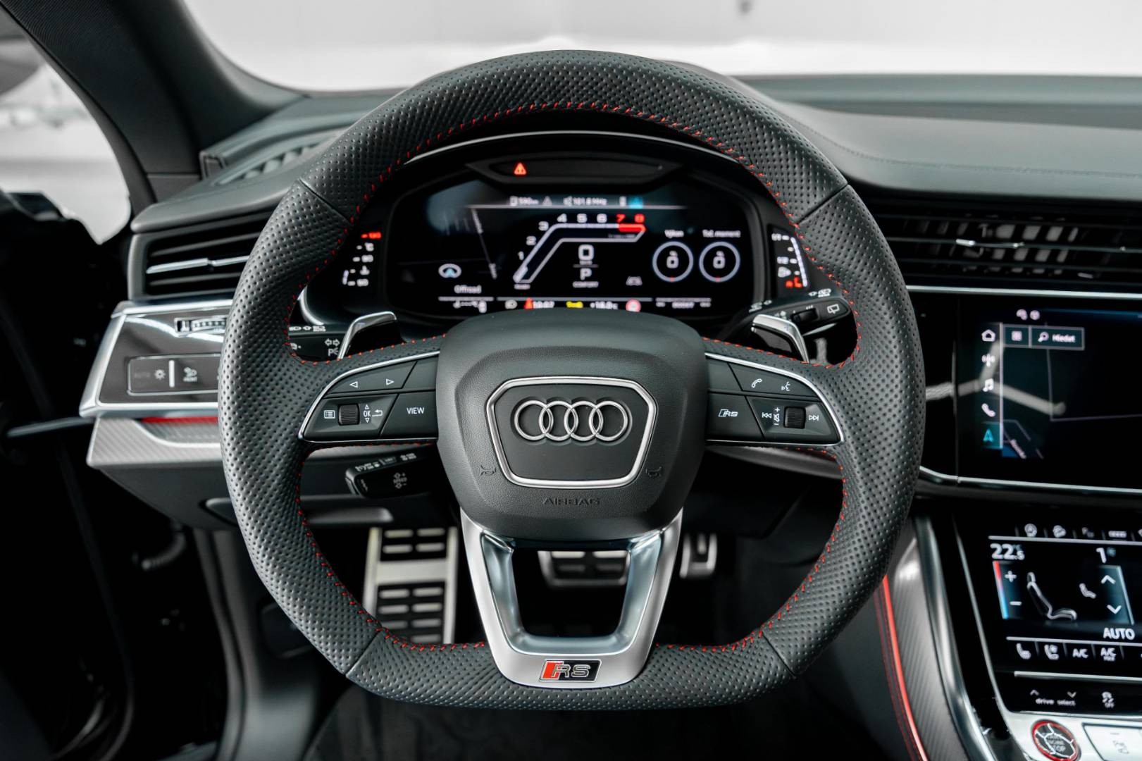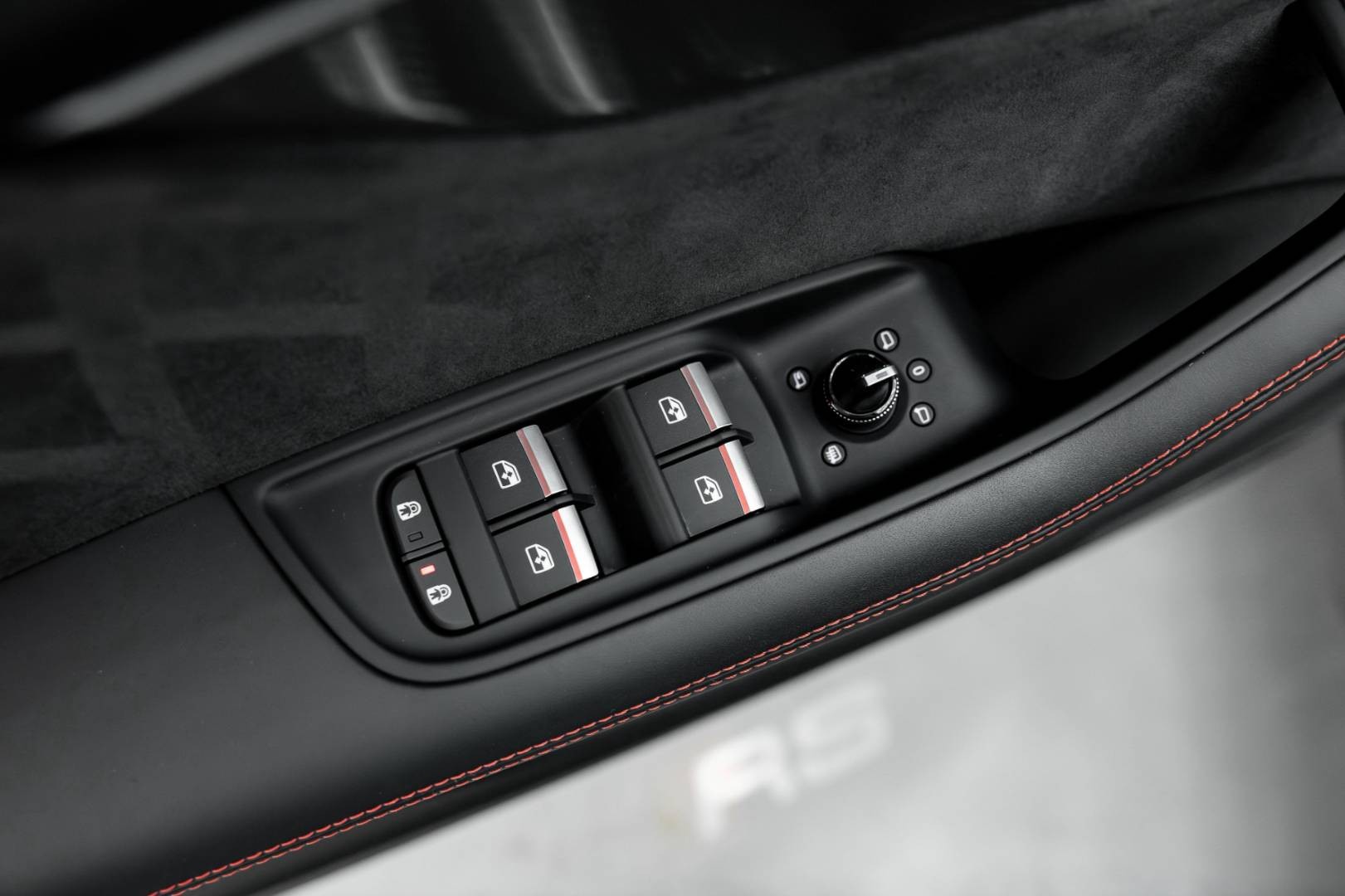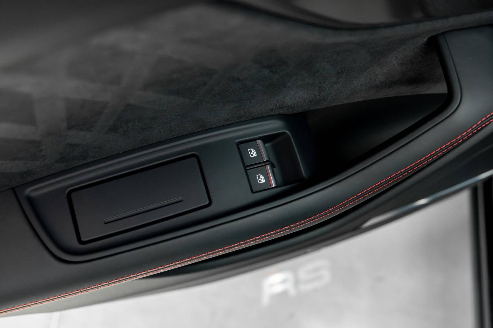 Parkovací asistent, rozhranie pre smartfóny Audi, vonkajšie spätné zrkadlá v hliníkovo/chrómových farbách, elektricky nastaviteľné, vyhrievané a sklopné vonkajšie spätné zrkadlá s automatickým stmievaním a pamäťou, handsfree systém Bluetooth s hlasovým rozpoznávaním (Audi Phone Box), čierne strešné lyžiny, zariadenie proti krádeži kolies (zámky kolies), head-up displej, úchyty Isofix pre detskú sedačku na sedadle spolujazdca, disky z ľahkých zliatin 10,5×23 (5-lúčové, rotorový dizajn, antracitovo čierna, leštené), svetlomety Matrix LED, metalický lak, dizajnový balík Audi exclusive carbon/lesklá čierna, panoramatická strecha (elektrická vpredu, pevná vzadu), športový výfukový systém RS, centrálne zamykanie dverí, poťah/čalúnenie sedadiel: perforovaná koža Valcona, prešívanie s voštinovým vzorom, vetrané), slnečná clona na zadnom okne (mechanicky ovládané) a elektrické zadné bočné okná, audiosystém Bang & Olufsen, nárazník vo verzii RS, celolakovaný, zatmavené zadné sklo (tónované sklo).