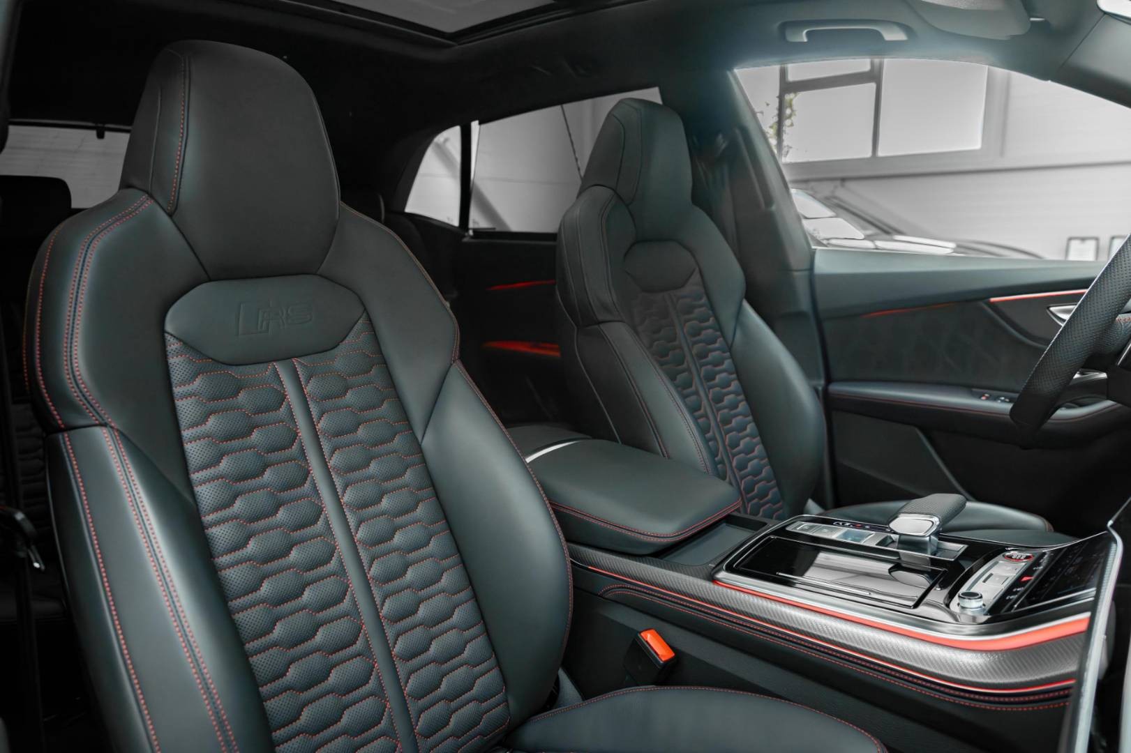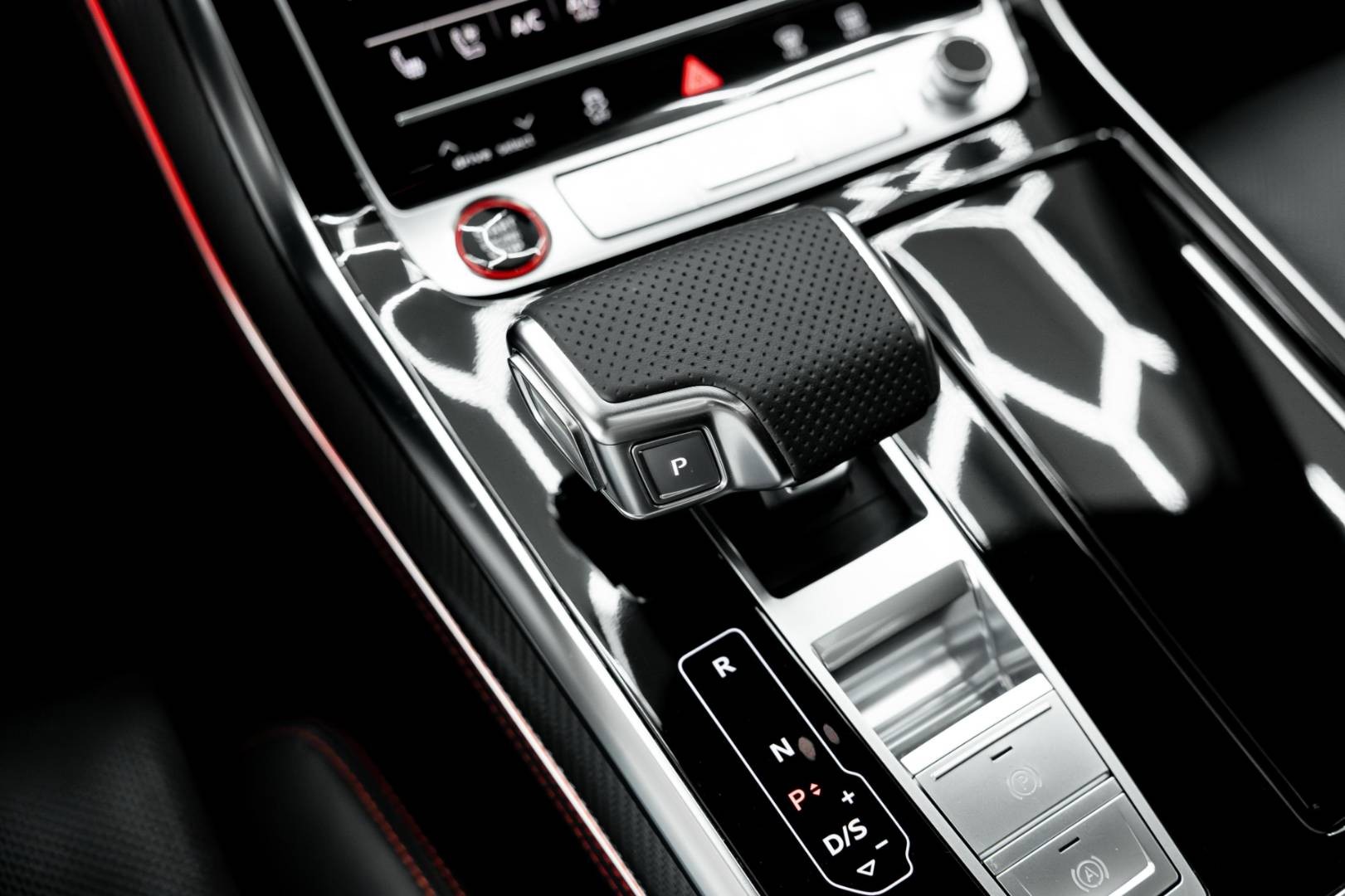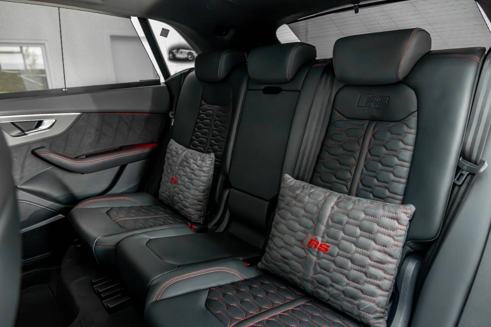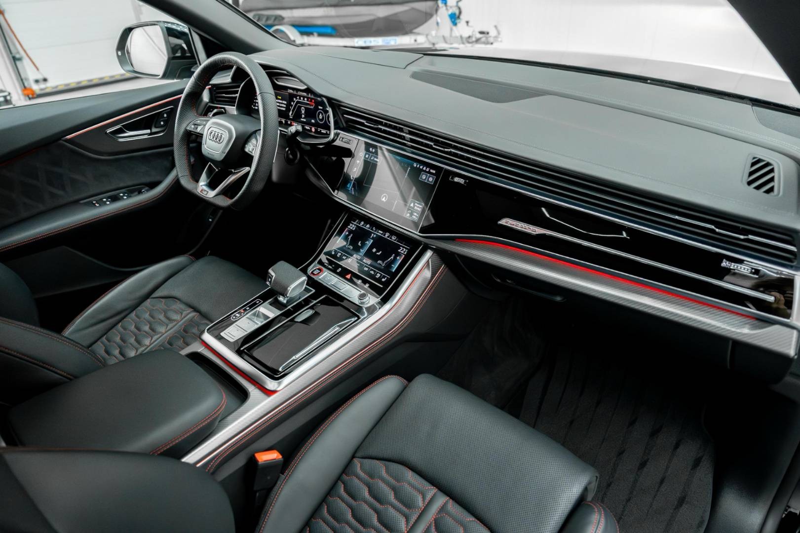 Parkovací asistent, rozhranie pre smartfóny Audi, vonkajšie spätné zrkadlá v hliníkovo/chrómových farbách, elektricky nastaviteľné, vyhrievané a sklopné vonkajšie spätné zrkadlá s automatickým stmievaním a pamäťou, handsfree systém Bluetooth s hlasovým rozpoznávaním (Audi Phone Box), čierne strešné lyžiny, zariadenie proti krádeži kolies (zámky kolies), head-up displej, úchyty Isofix pre detskú sedačku na sedadle spolujazdca, disky z ľahkých zliatin 10,5×23 (5-lúčové, rotorový dizajn, antracitovo čierna, leštené), svetlomety Matrix LED, metalický lak, dizajnový balík Audi exclusive carbon/lesklá čierna, panoramatická strecha (elektrická vpredu, pevná vzadu), športový výfukový systém RS, centrálne zamykanie dverí, poťah/čalúnenie sedadiel: perforovaná koža Valcona, prešívanie s voštinovým vzorom, vetrané), slnečná clona na zadnom okne (mechanicky ovládané) a elektrické zadné bočné okná, audiosystém Bang & Olufsen, nárazník vo verzii RS, celolakovaný, zatmavené zadné sklo (tónované sklo).