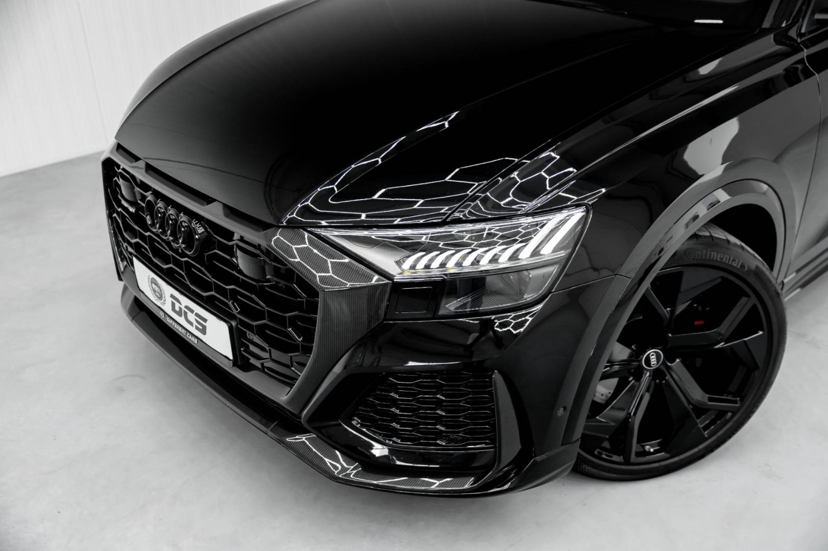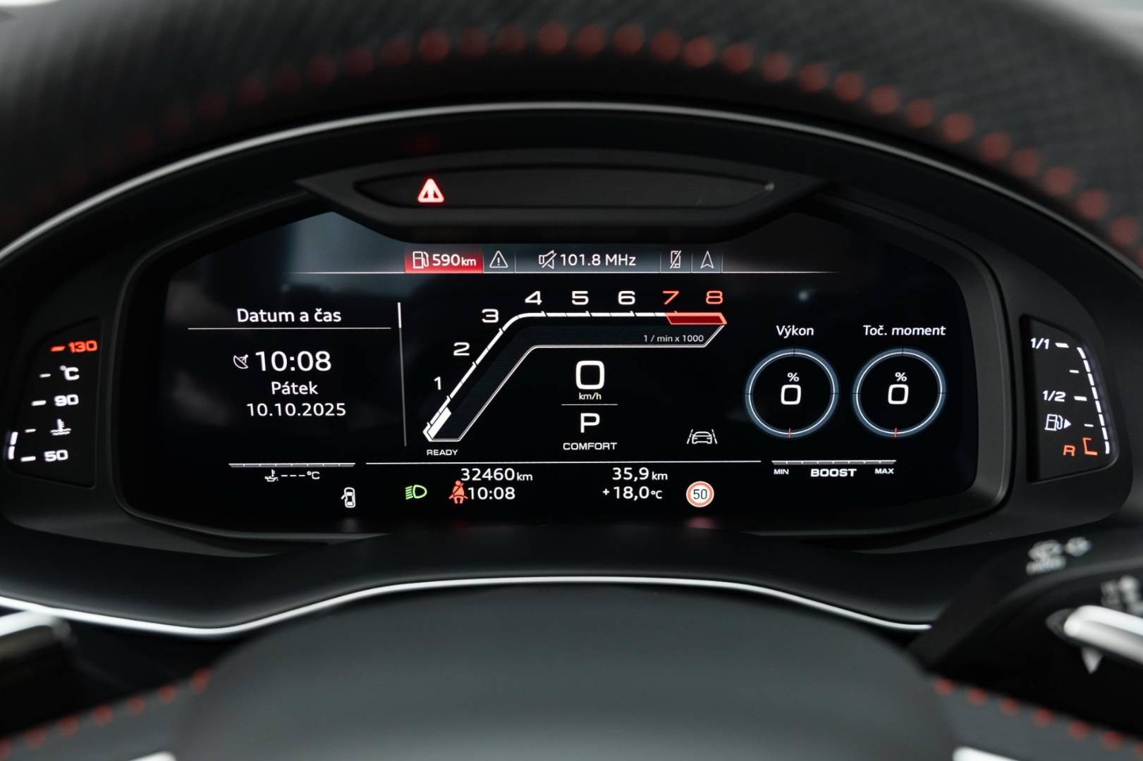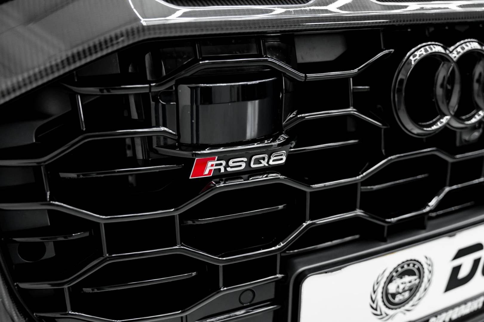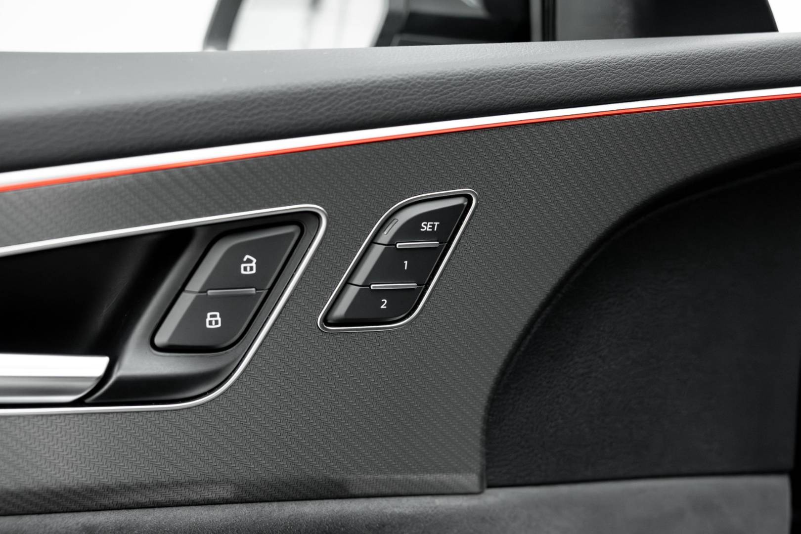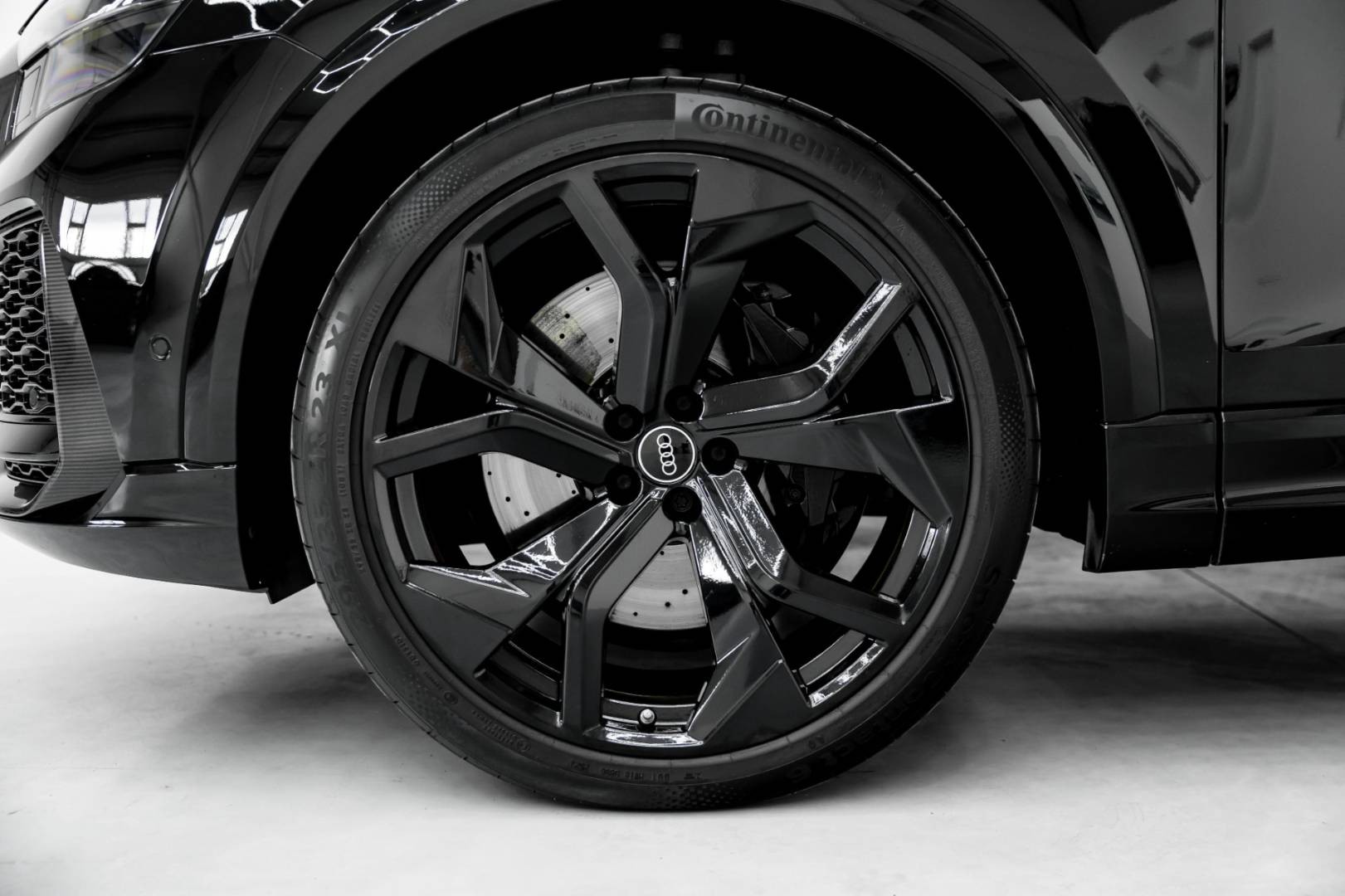 Parkovací asistent, rozhranie pre smartfóny Audi, vonkajšie spätné zrkadlá v hliníkovo/chrómových farbách, elektricky nastaviteľné, vyhrievané a sklopné vonkajšie spätné zrkadlá s automatickým stmievaním a pamäťou, handsfree systém Bluetooth s hlasovým rozpoznávaním (Audi Phone Box), čierne strešné lyžiny, zariadenie proti krádeži kolies (zámky kolies), head-up displej, úchyty Isofix pre detskú sedačku na sedadle spolujazdca, disky z ľahkých zliatin 10,5×23 (5-lúčové, rotorový dizajn, antracitovo čierna, leštené), svetlomety Matrix LED, metalický lak, dizajnový balík Audi exclusive carbon/lesklá čierna, panoramatická strecha (elektrická vpredu, pevná vzadu), športový výfukový systém RS, centrálne zamykanie dverí, poťah/čalúnenie sedadiel: perforovaná koža Valcona, prešívanie s voštinovým vzorom, vetrané), slnečná clona na zadnom okne (mechanicky ovládané) a elektrické zadné bočné okná, audiosystém Bang & Olufsen, nárazník vo verzii RS, celolakovaný, zatmavené zadné sklo (tónované sklo).