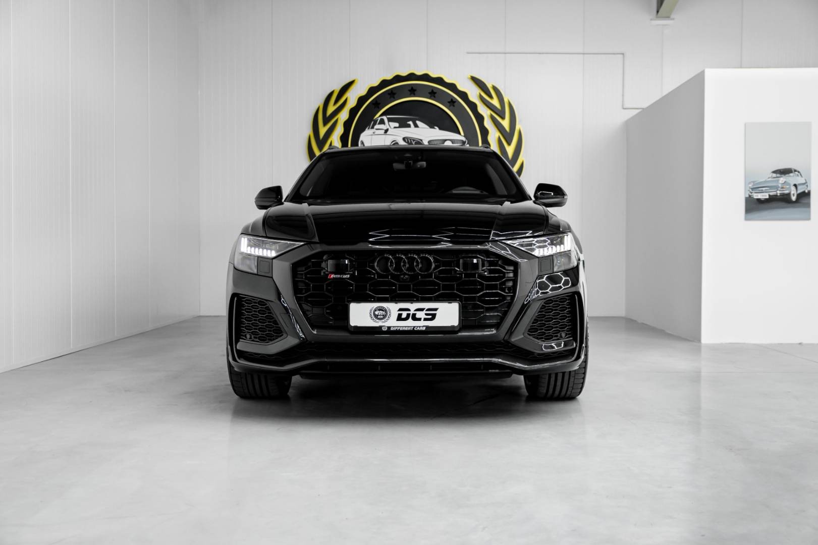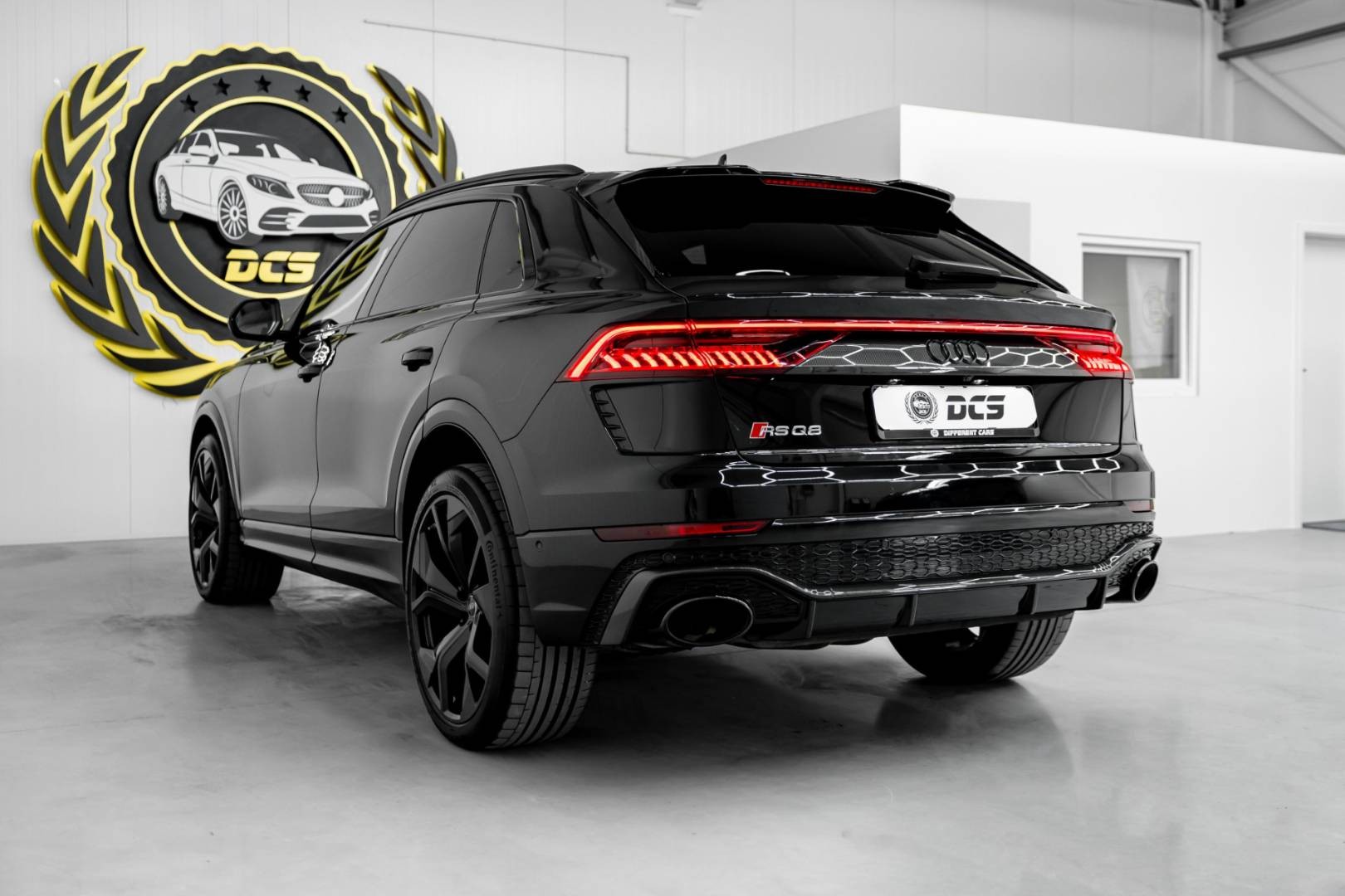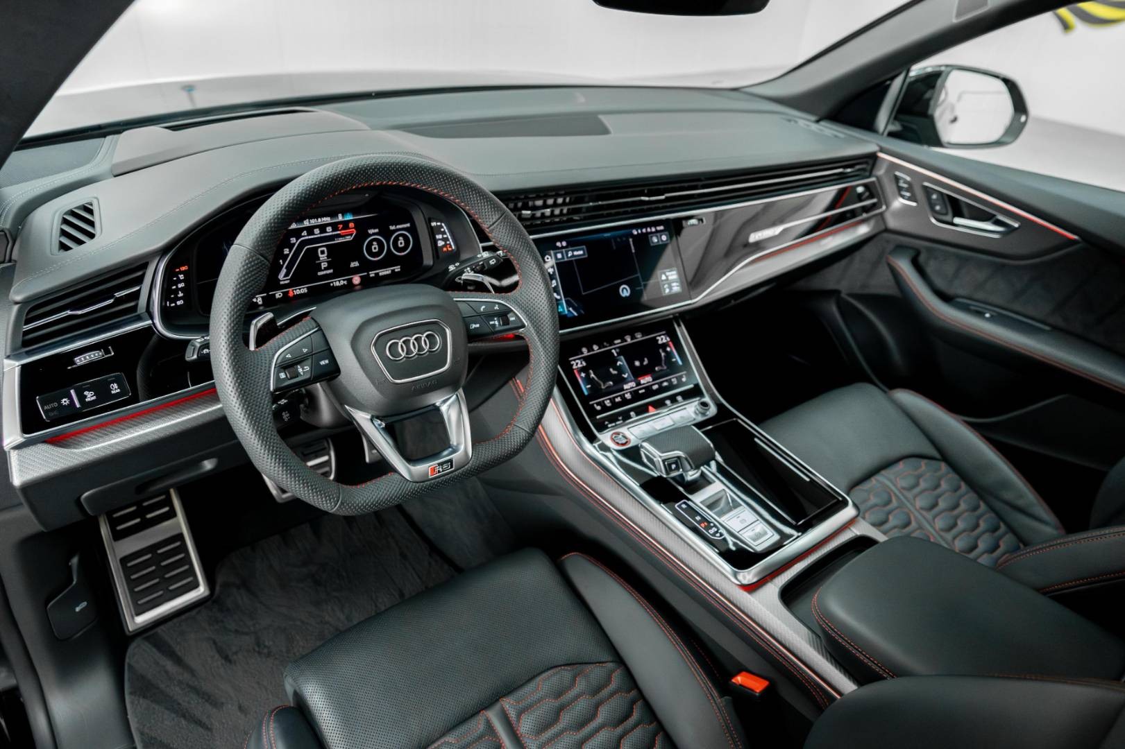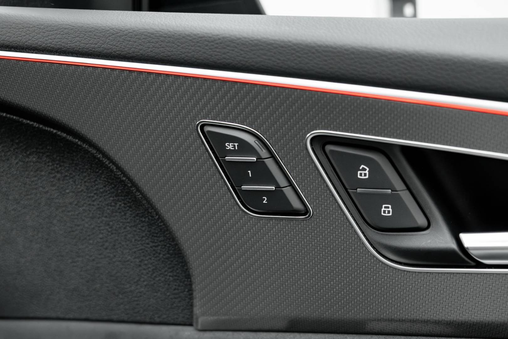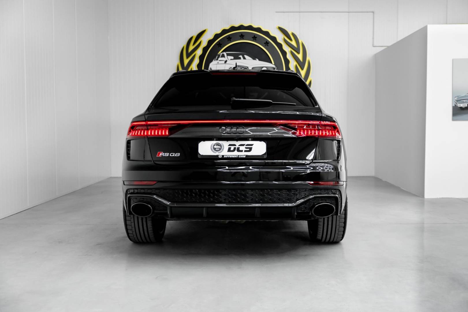 Parkovací asistent, rozhranie pre smartfóny Audi, vonkajšie spätné zrkadlá v hliníkovo/chrómových farbách, elektricky nastaviteľné, vyhrievané a sklopné vonkajšie spätné zrkadlá s automatickým stmievaním a pamäťou, handsfree systém Bluetooth s hlasovým rozpoznávaním (Audi Phone Box), čierne strešné lyžiny, zariadenie proti krádeži kolies (zámky kolies), head-up displej, úchyty Isofix pre detskú sedačku na sedadle spolujazdca, disky z ľahkých zliatin 10,5×23 (5-lúčové, rotorový dizajn, antracitovo čierna, leštené), svetlomety Matrix LED, metalický lak, dizajnový balík Audi exclusive carbon/lesklá čierna, panoramatická strecha (elektrická vpredu, pevná vzadu), športový výfukový systém RS, centrálne zamykanie dverí, poťah/čalúnenie sedadiel: perforovaná koža Valcona, prešívanie s voštinovým vzorom, vetrané), slnečná clona na zadnom okne (mechanicky ovládané) a elektrické zadné bočné okná, audiosystém Bang & Olufsen, nárazník vo verzii RS, celolakovaný, zatmavené zadné sklo (tónované sklo).